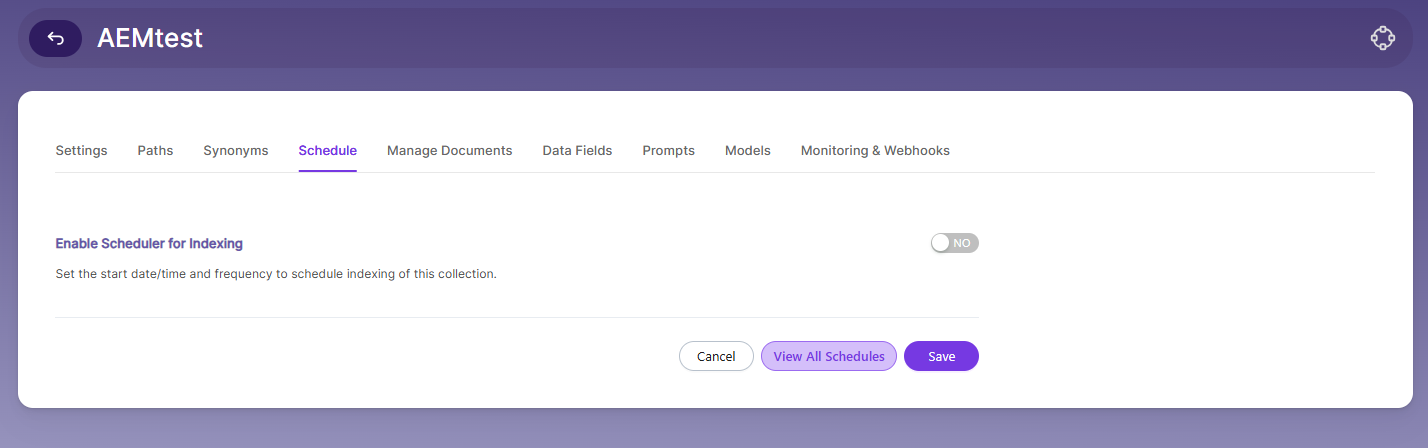 | Schedule | Set the indexing schedule for each collection based on the selected options. |