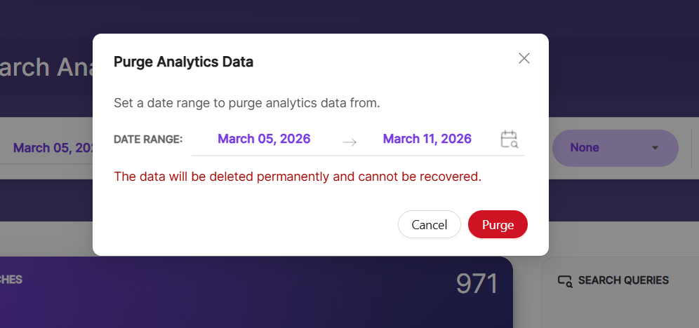 This action permanently deletes unnecessary or outdated data from the database. Once the data is purged, it cannot be restored. Click the purge icon shown below to perform this action.