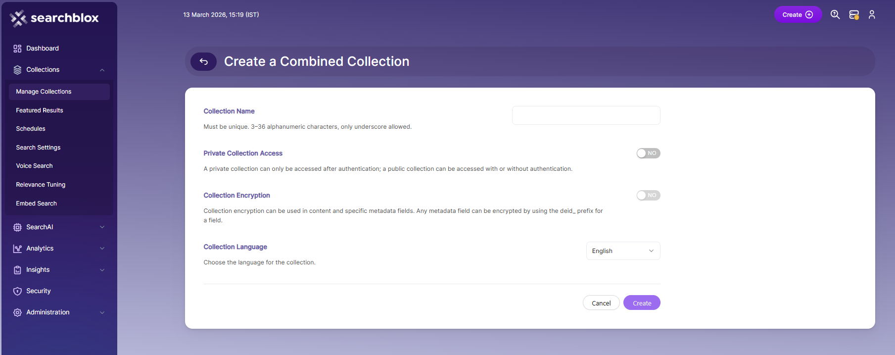 - Set Private/Public Collection Access and Collection Encryption as needed.