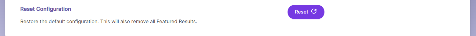 - Resetting the configuration will also remove all Featured Results.