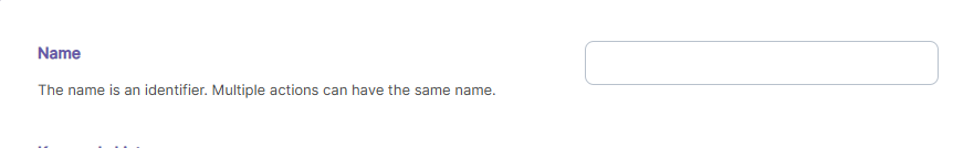 This provides a clear, step-by-step guide to creating a new action, including setting keywords, choosing the action type, and configuring its behavior.