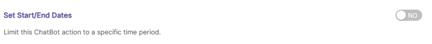 Enable the date range option by toggling it to Yes. Then, set a Start and End date to specify when the action will be active.