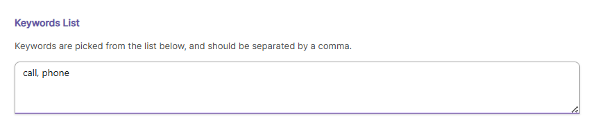 These are the words or phrases that trigger the action when used by a user. You can manually enter keywords or select them from a URL list.
