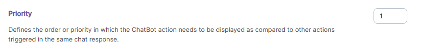 Assign a priority number to the action. When multiple actions are triggered, the one with the highest priority (lowest number) will be executed first. This determines the order in which actions are considered for the same user input.