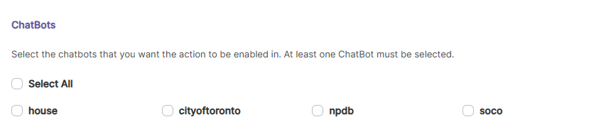 Choose the relevant chatbot(s) from the list that should have this action enabled.