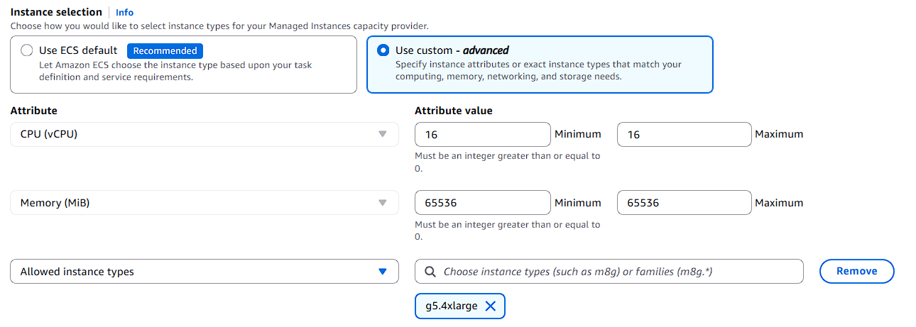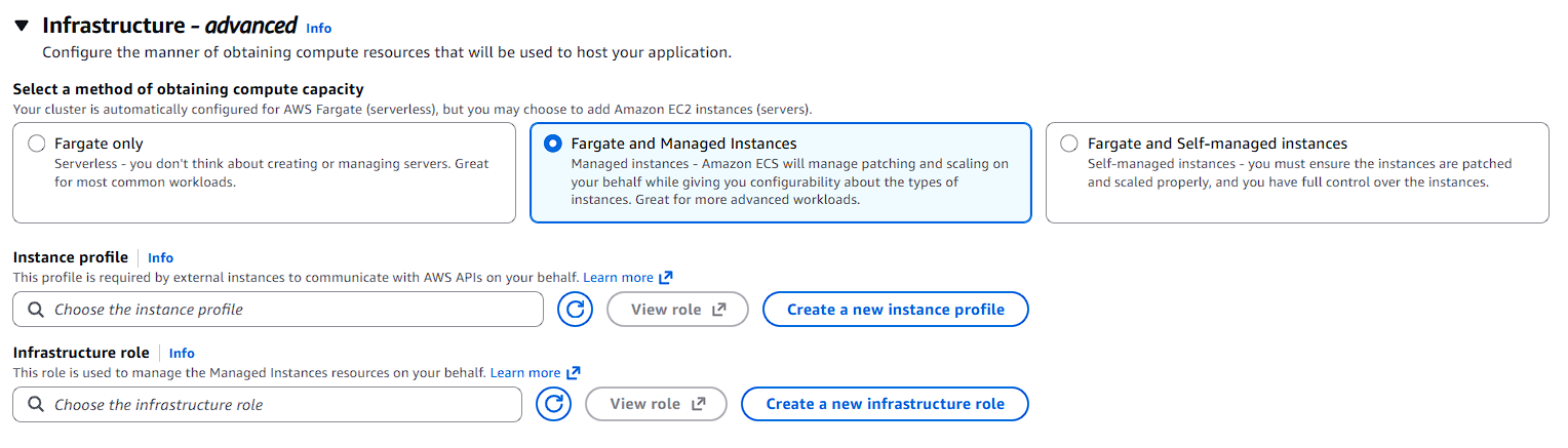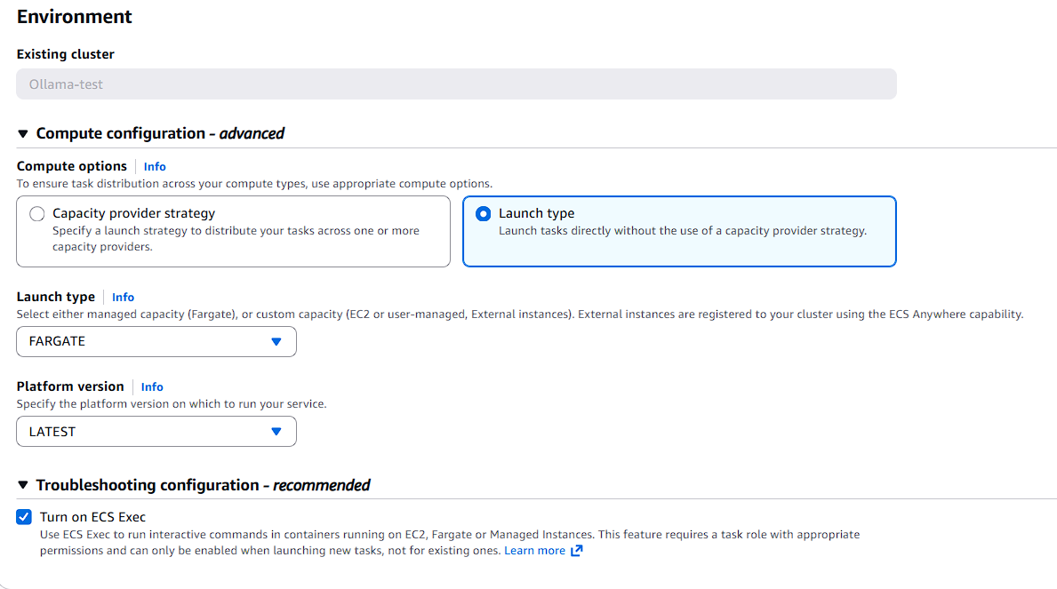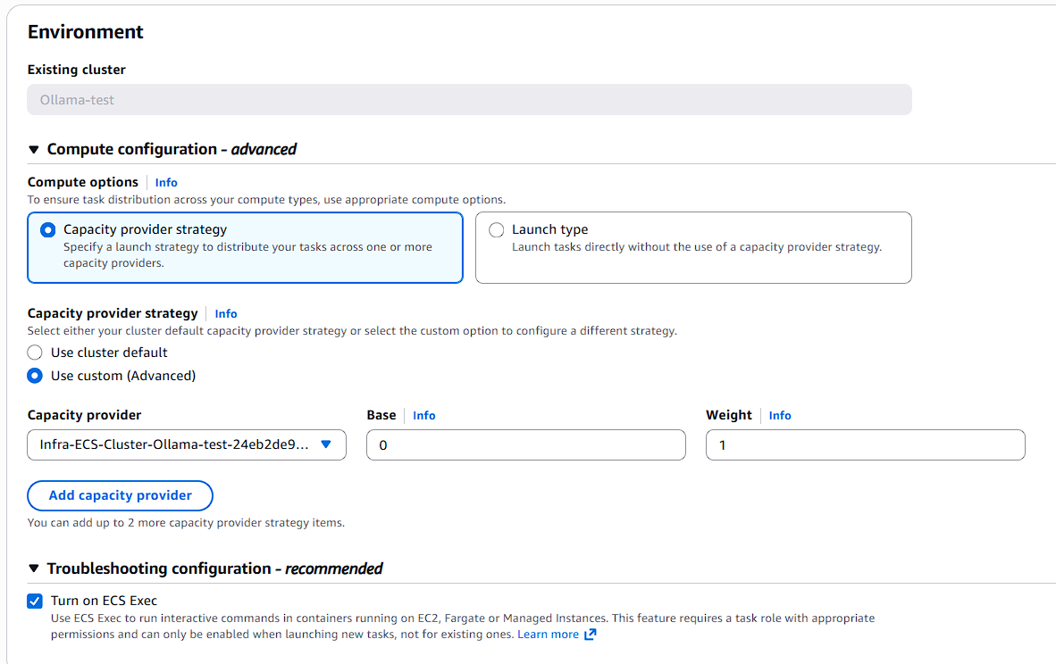 - Compute options: Capacity provider strategy