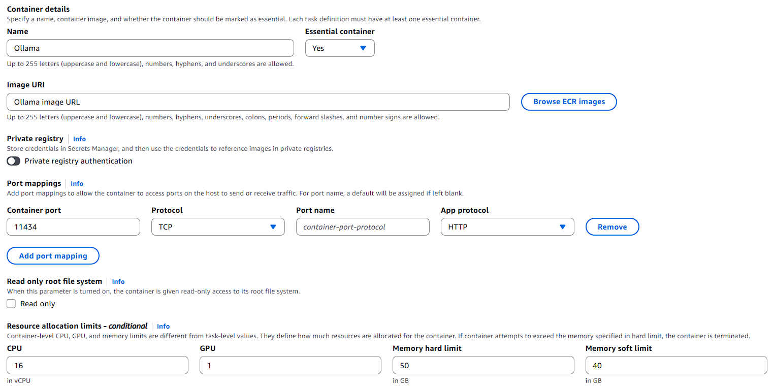 - Image URI: ollama Image