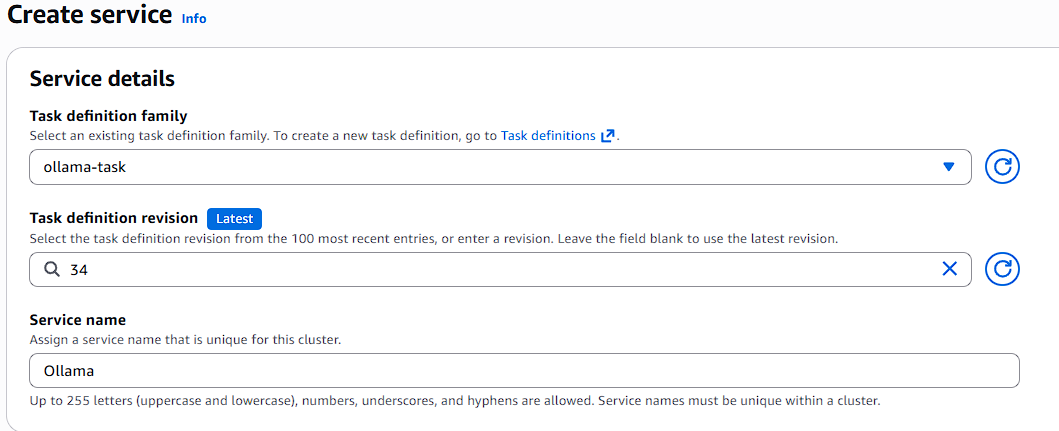 - Task Definition: Choose latest revision