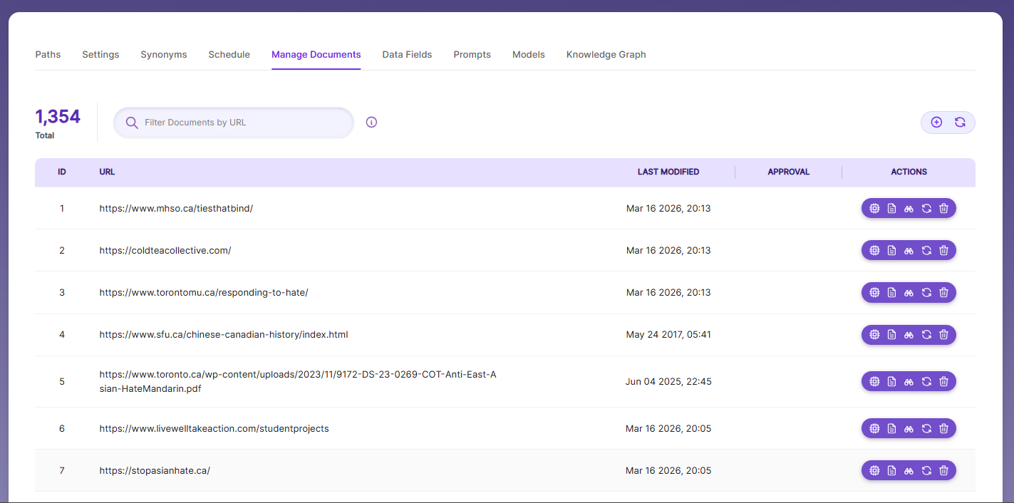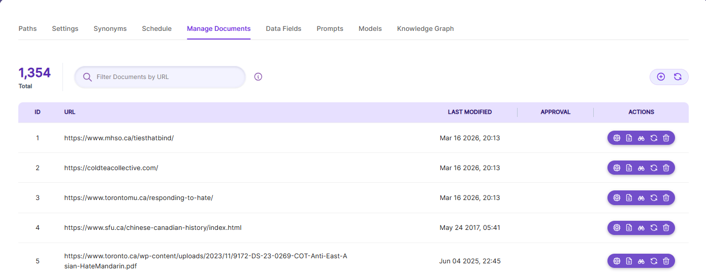 After indexing, user can see the Approval button for those URLs in Management Tab.