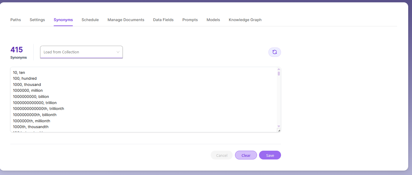 We have an option to load Synonyms from the existing documents.