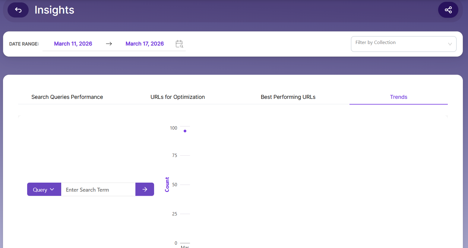 Top-Performing Queries highlights the queries with the highest number of URL clicks and also shows the average position of the documents that were clicked.