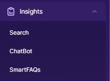 Insights enables data-driven decision-making by highlighting how users interact with search, chatbot responses, and FAQ systems. It consolidates key metrics and reports into a single interface for easier monitoring and analysis.