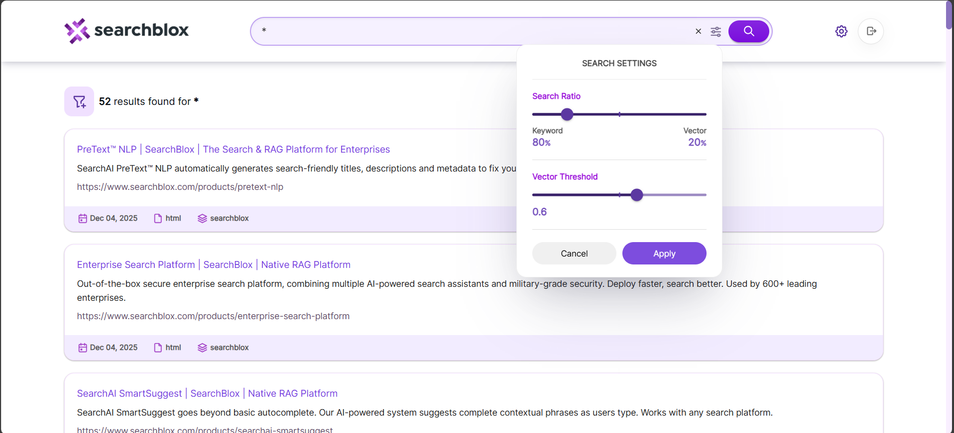 | RAG (Retrieval Augmented Generation) | Breaks content into chunks, creates vector embeddings, and enables Hybrid RAG search. |