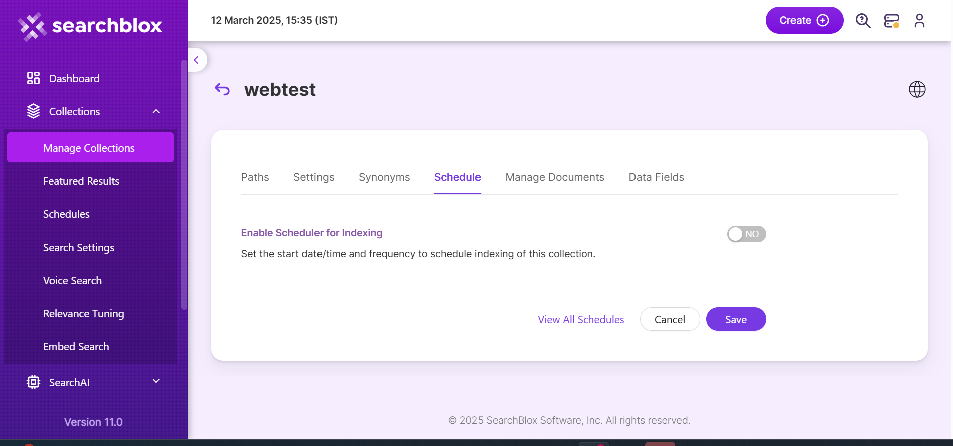 | Save | For each collection, indexing can be scheduled based on the above options. |