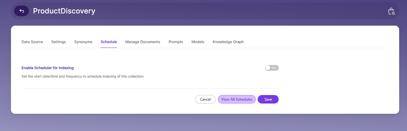 | View all Schedules | Opens the Schedules section where you can see all indexing schedules for all collections. |