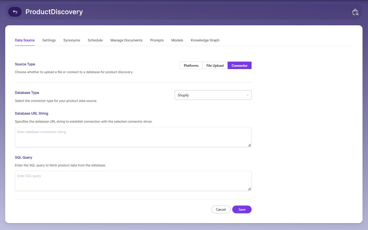 | Database Type | Choose the type from the drop-down list. By default it's Shopify. |