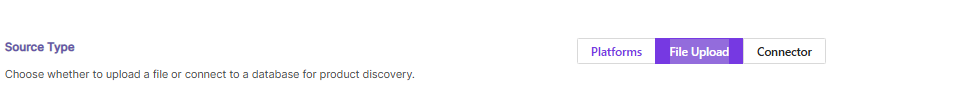 To upload your product data file, click the Upload button. You can upload a CSV or JSON file.