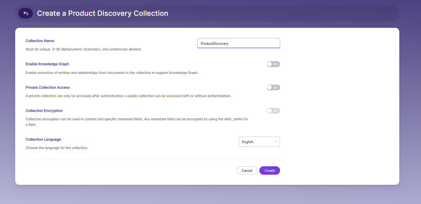 A Product Discovery Collection is used to index information from a product dataset. In simple terms, each product in your dataset becomes one document in the collection.