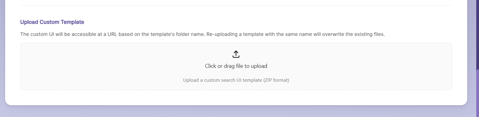 - Go to the section in the SearchBlox Dashboard for uploading custom UI templates.