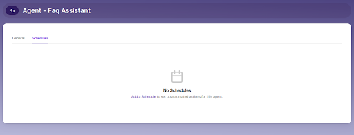 The Schedules tab within an agent allows you to automate agent execution on a defined schedule.