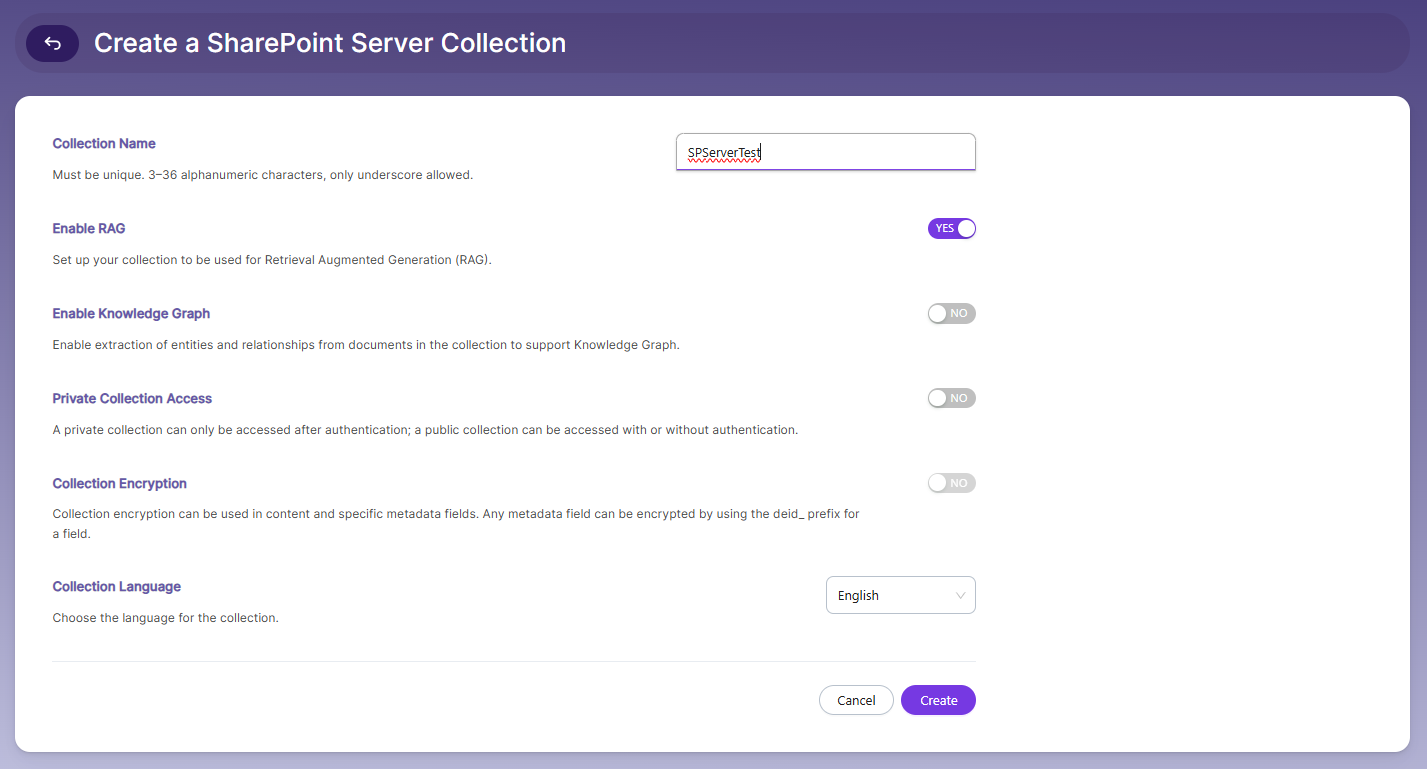 - Enter a unique name for the collection (e.g., SharePointServer).