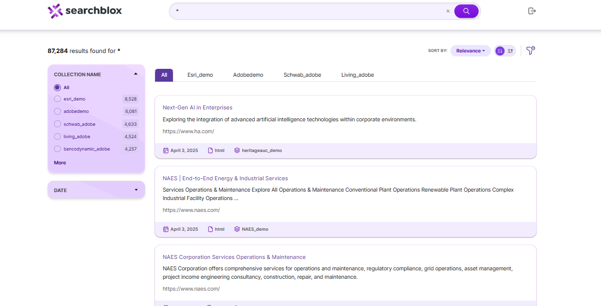 Tabbed Search is one of the faceted search interfaces available from SearchBlox v10. Using this search you can view tabbed results based on collections. This tabbed search can be used across all types of collections and you can view results from all collections as well as individual collections by navigating across the tabs.
