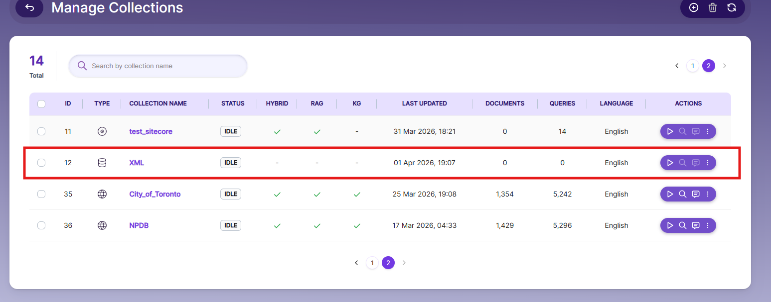 The following actions are available for Database Collections: